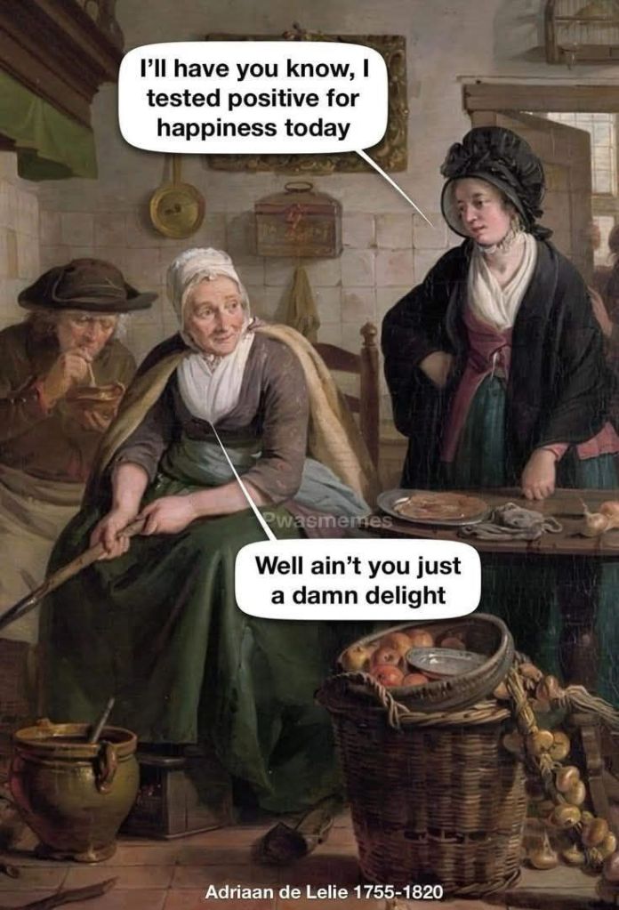 Regardez gang, j’ai testé positif au bonheur. Maudite bonne nouvelle.