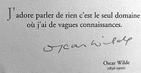 Comme Oscar Wilde, quel sauvage de la pensée, j’aime parler de tout et de rien, mais je préfère parler de rien car alors tout est possible. Car si on pense parler de tout, on en oublie toujours un ptit bout. Surtout celui qui compte. Le bout du batôn. Le boutt du batt.