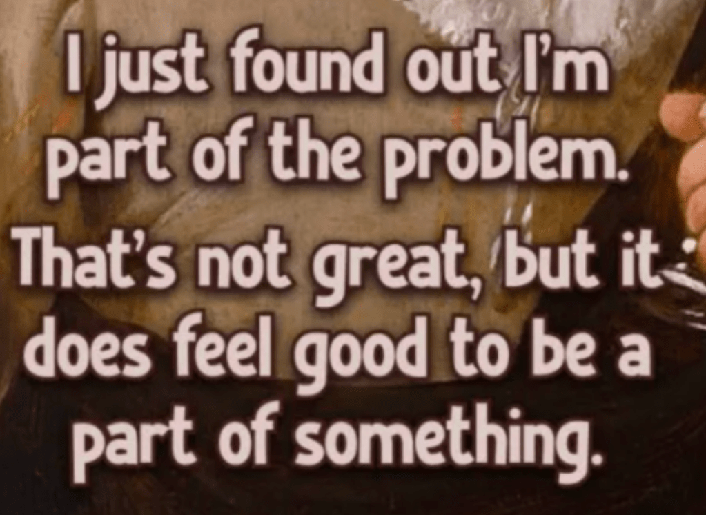 On a beau se divertir, ou tenter de le faire, car sincèrement, ça fonctionne jusqu’à un certain point seulement, si nous sommes le moindrement humanosensibles, on va le feeler le monde. On va la pogner la vibe mondiale.