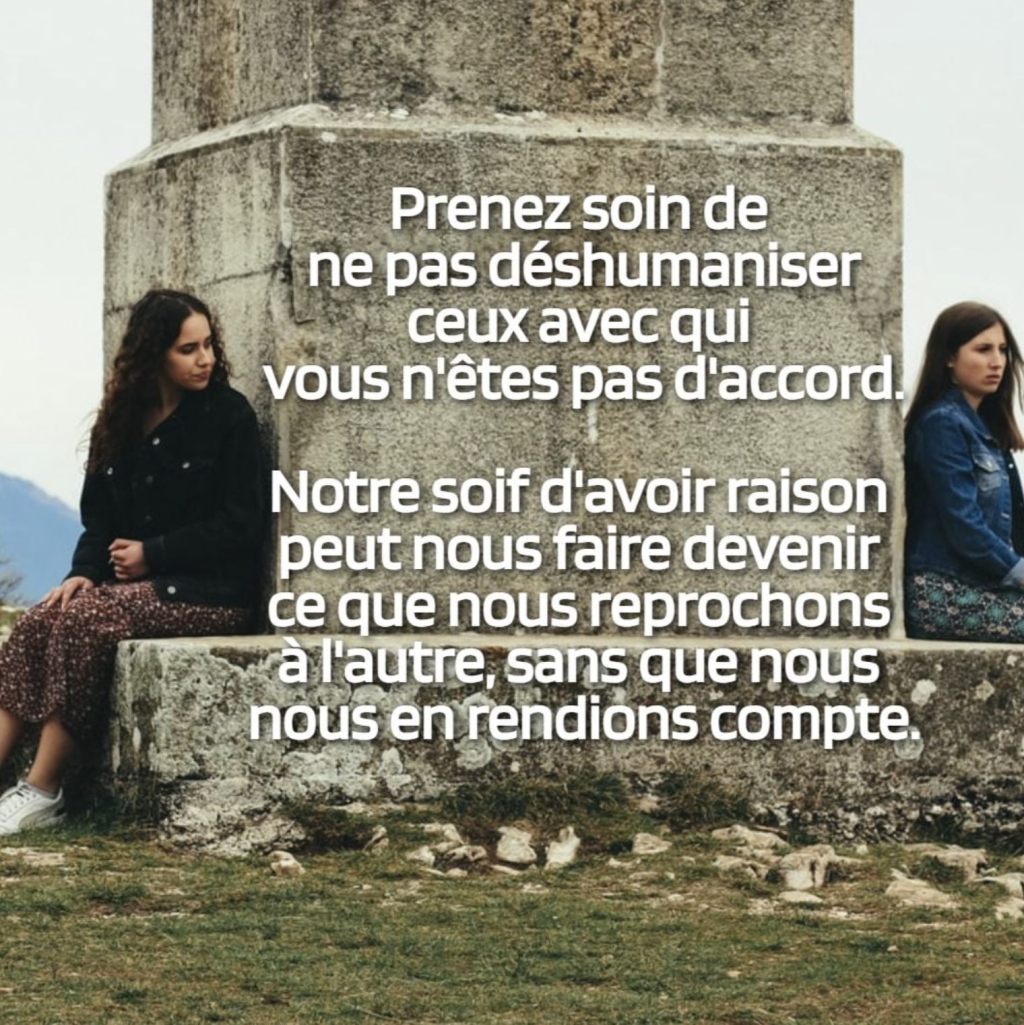 Mais peut-être que le défi principal dans ce grand brassage social actuel plein de polarisation et de bruit consiste simplement à demeurer humain, humaine. Simple mais grande leçon.