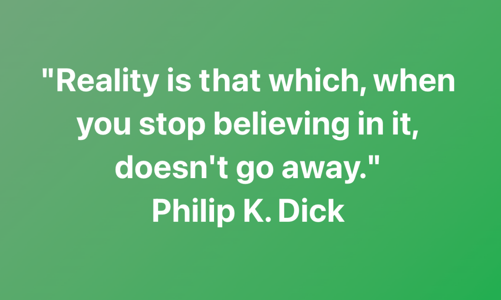Pour faire suite à la discussion que nous avions entamé il y a quelque temps sur la « vérité », « Reality is that which when you stop believing in it doesn’t go away », ça veut dire qu’il existe une réalité qui est indépendant de nos croyances. C’est pal mal proche de l’idée qu’il existe une réalité objective indépendant de l’observateur. Loin de moi d’insister que c’est moi qui avait raison 🙂 c’est juste pour mentionner que cette question philosphique revient sur le tapis sous différentes formes assez souvent et que c’est loin d’être résolu facilement.