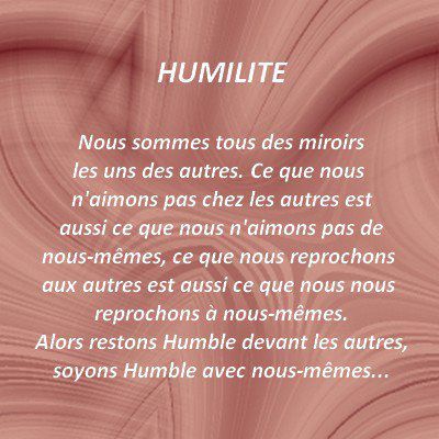 Humble devant les autres, humble avec nous-mêmes. Tout est là. Demeurer humble devant les autres car nous sommes tous faits de la même terre, du même humus, et être humble avec soi-même, car notre relation avec soi teinte toutes nos relations avec autrui.