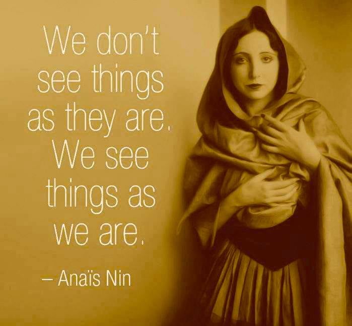 Tel que l’avance Anaïs Nin ci-haut, il n’est pas rare d’entendre ou de lire qu’un monde neutre et objectif n’existe pas en tant que tel, que nous ne voyons pas le monde tel qu’il est, mais davantage tel que nous sommes.