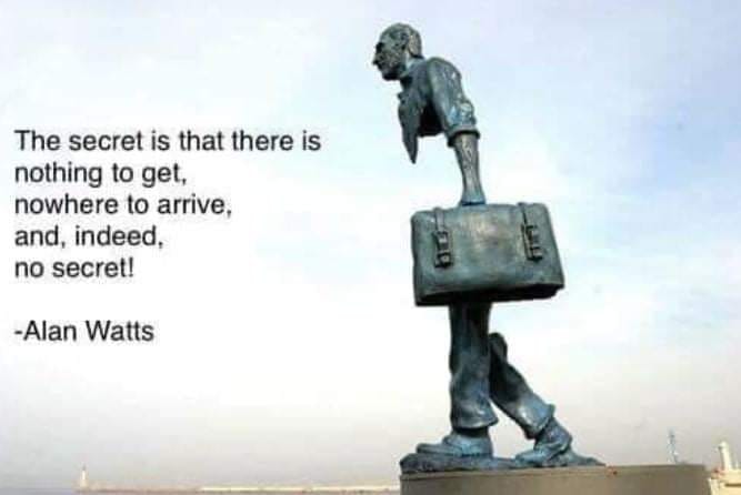 Nulle part où aller ailleurs qu’où nous sommes en ce moment même. Rien à acquérir que nous n’ayons pas déjà. Rien à n’être que nous ne sommes pas déjà. Rien à devenir. Rien en devenir. Et tout est rien qui finit bien.
