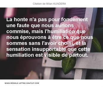 On dit que la honte est la seule émotion humaine qui ne soit pas innée, ni intrinsèque, mais qu’elle a inévitablement rapport à autrui. En fait, pour certains, la honte ne serait même pas vraiment une émotion dans la grande gamme des émotions humaines, car aucun enfant ne nait avec de la honte. D’ailleurs parmi toutes les formes de vie, on dit aussi que seuls les humains ressentent de la honte. Comme on ne peut parler aux végétaux, aux minéraux ni aux animaux (la plupart d’entre nous du moins) on ne peut l’affirmer à 100 % mais ça fait du sens.