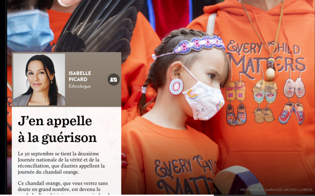 Ce matin, je laisse la place aux mots d’Isabelle Picard car elle rend mieux que je ne pourrais le faire l’importance de cette journée pour tout le monde, non pas seulement pour les premières nations. Car passé commun que nous partageons, même si eux et elles ont souffert plus que nous.