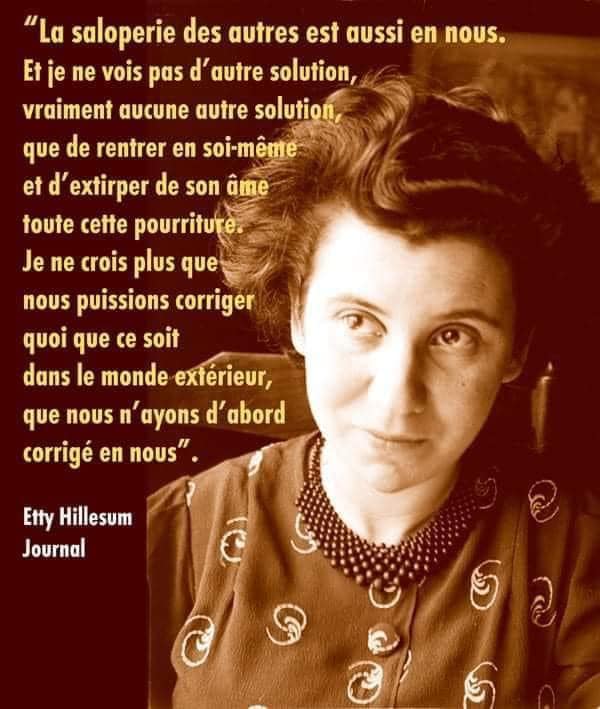 Ces mots d’Etty Hillesum peuvent être difficiles à accepter pour certain(e) qui se croient sans faille et sans reproche mais ils sont très justes à mon humble avis.