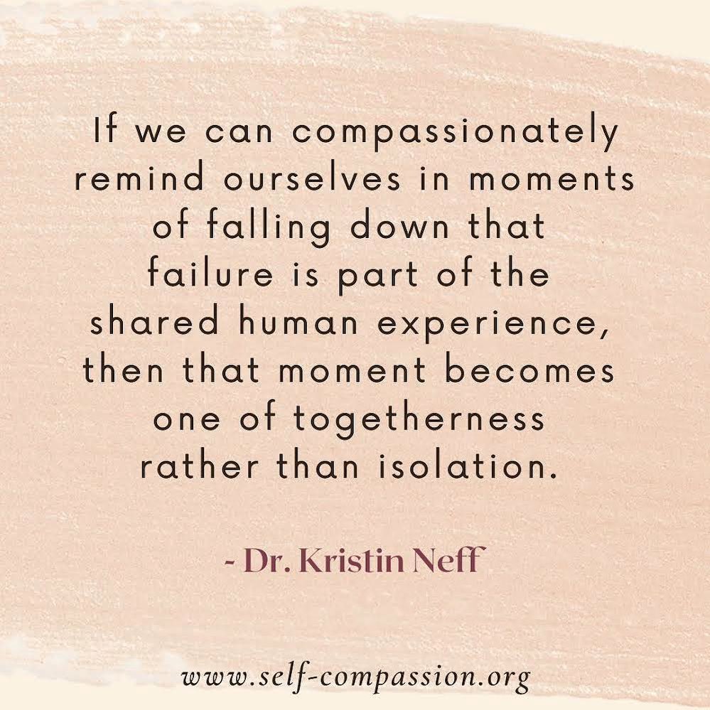 Si, dans nos descentes, nous pouvons nous rappeler, avec compassion, que nos faiblesses font partie de notre expérience d’humanité commune, alors ces expériences deviennent des passages d’unité plutôt que d’isolement. – Dr Kristin Neff