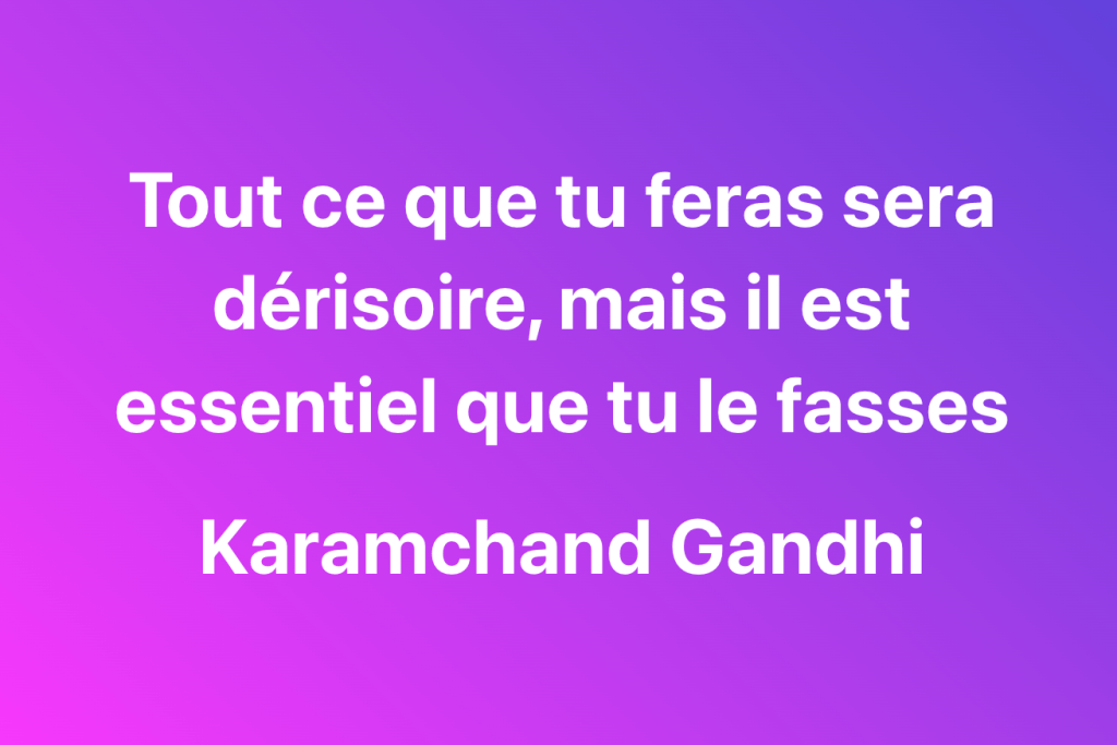 Et comme l’affirme Karamchand Gandhi ci-haut, tout ce que l’on fera au cours de notre vie est dérisoire, mais il est essentiel qu’on le fasse tout de même. Si on trouve le mot dérisoire trop fort, on peut le remplacer par d’importance relative, plus ou moins important.