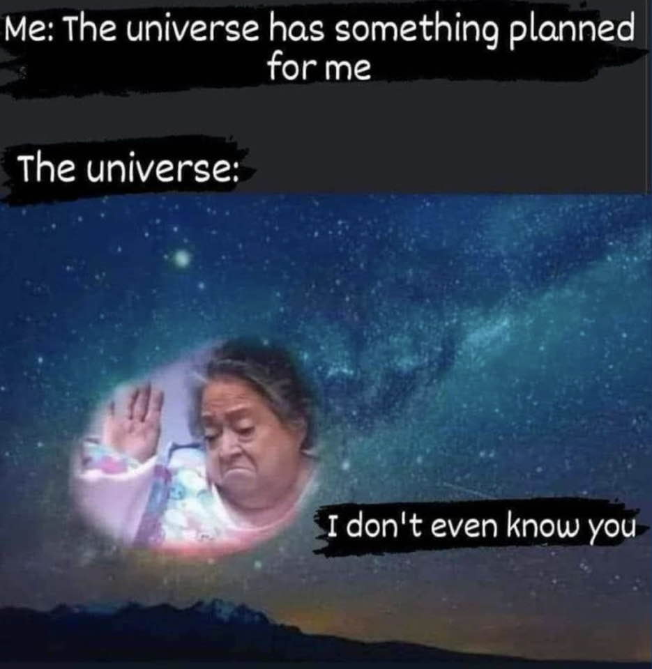 Nous pensons que lorsque nous prions Dieu, il – ou elle ou ielle ou ça – nous écoute et nous entend et répondra éventuellement à nos demandes, commandes et intentions. Certain(e) aiment penser qu’il n’y a pas de hasard et que tout est déjà planifié et décidé. Le grand plan divin. Que lorsque quelque chose arrive, ça suit un certain plan pré-déterminé, celui de l’Ordre des choses.