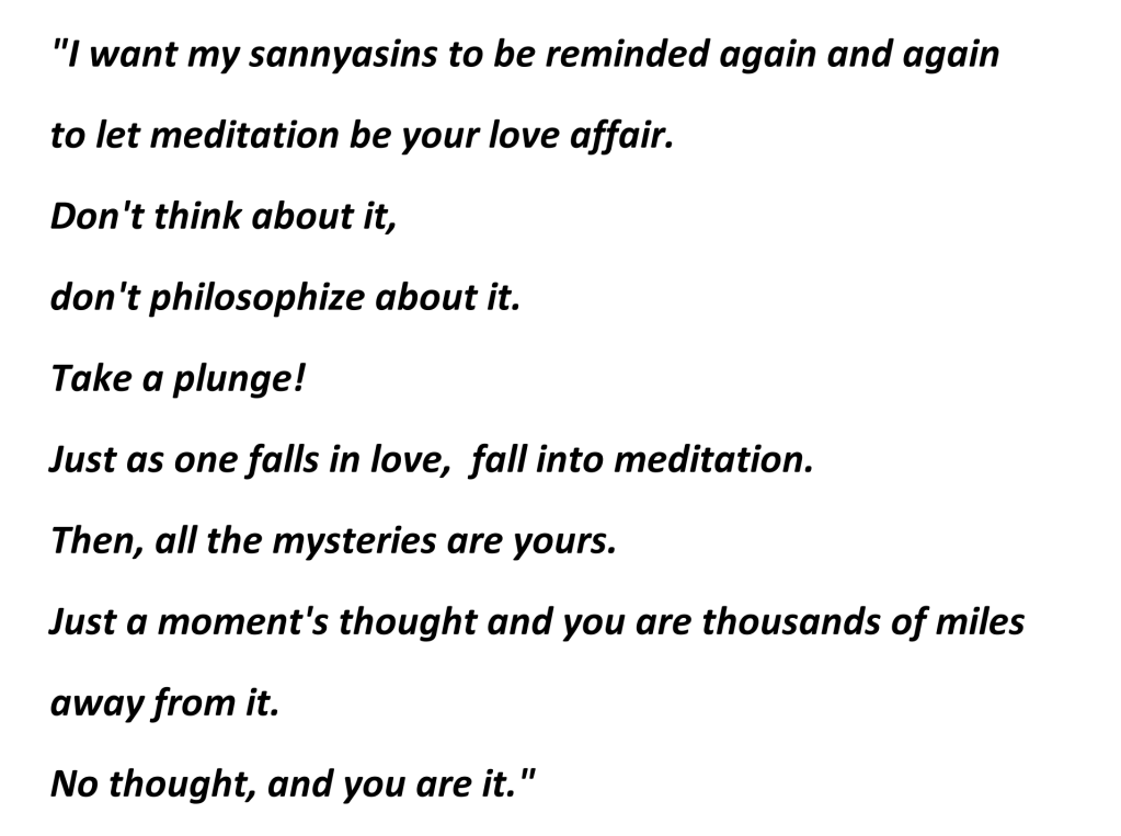 Je veux que mes sannyasins se souviennent de laisser la méditation être leur histoire d’amour.