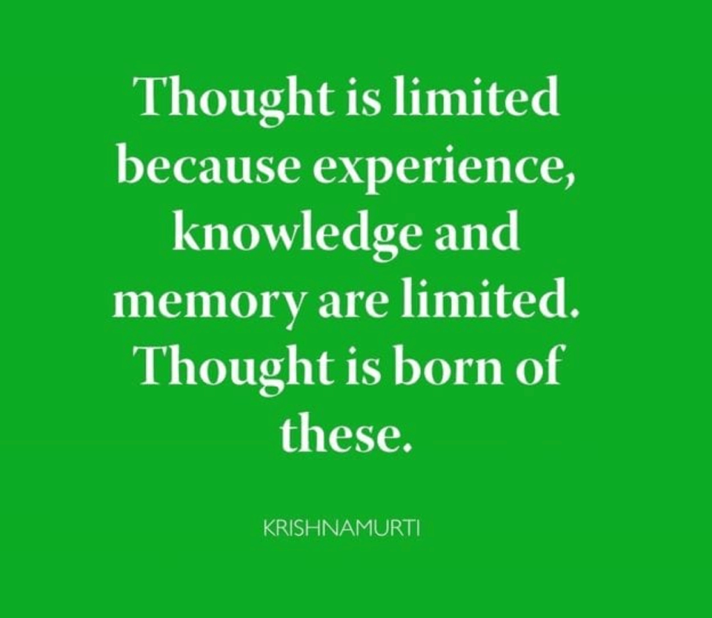 Comme le dit encore Mister K, la pensée est limitée car les expériences, la connaissance et la mémoire sont limitées et la pensée émane de ça. D’ailleurs, la mémoire est de plus en plus limitée avec l’âge, peut-être une bonne chose d’ailleurs, ça nous garde dans le moment.