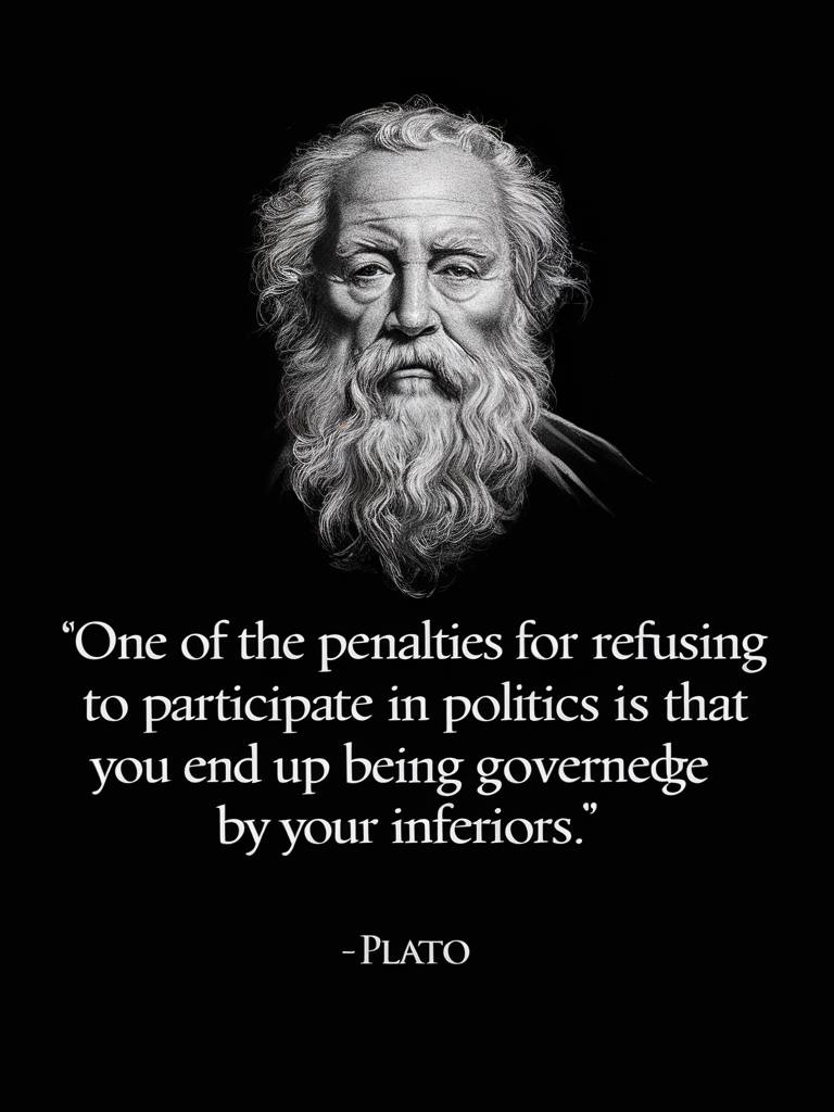 Tenez, cette citation par exemple: Une des punitions pour refuser de prendre part au jeu politique est que vous finissez par être gouverné(e) par des gens inférieurs à vous.