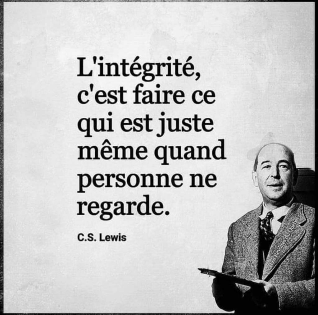 Être intègre veut dire pour moi faire ce qui est juste, et automatiquement le juste sera bon.