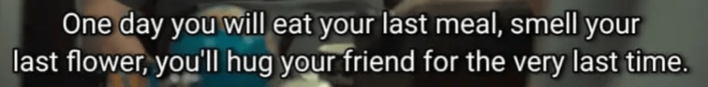 Un jour, nous prendrons notre dernier repas, sentirons notre dernière fleur, nous donnerons la dernière accolade à un(e) ami(e).