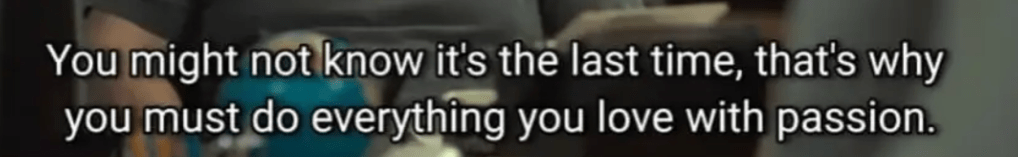 Et nous ne saurons pas que ce sera la dernière fois, c’est pour cela que l’on doit faire tout ce que l’on fait par amour et avec passion.