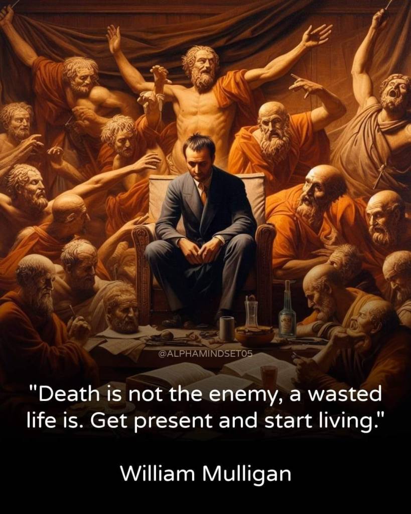 L’idée avec notre mort à venir consiste à l’utiliser pour nous rappeler de vivre totalement, complètement, passionnément. De s’investir dans tout ce que l’on fait, de faire surtout ce que l’on aime, ou de faire ce que l’on doit faire avec tout notre coeur.