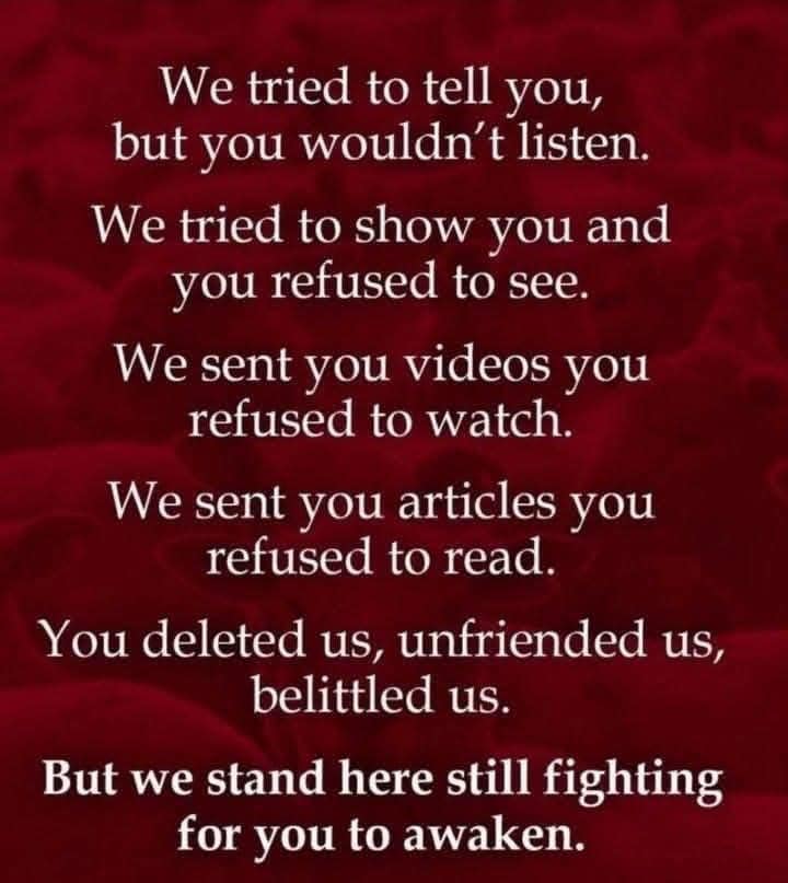 Mais nous sommes toujours ici, nous battant pour tenter de vous réveiller.