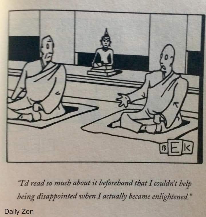 Devant la futilité du monde parfois, face au découragement, aux déceptions et à notre impuissance à rendre ce monde comme on pense qu’il devrait être, on peut être porté.e à courir après un certain Nirvana, à désirer une paix de l’esprit permanente et complète, atteindre la grande illumination. Mais peut-être que cela n’est simplement qu’une autre illusion et que même cela va nous décevoir si nos attentes sont trop élevées. 😉
