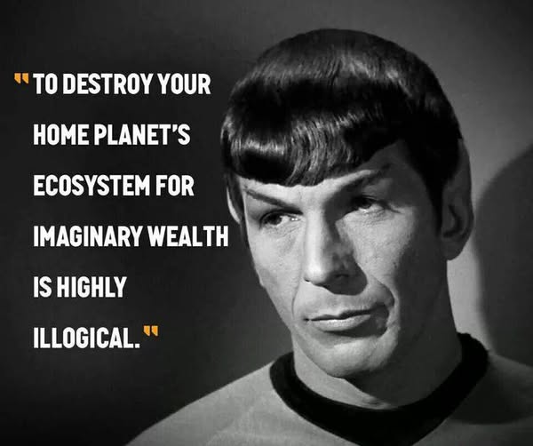 Et parole de Spock : détruire l’écosystème de notre planète pour une richesse imaginaire est hautement illogique.