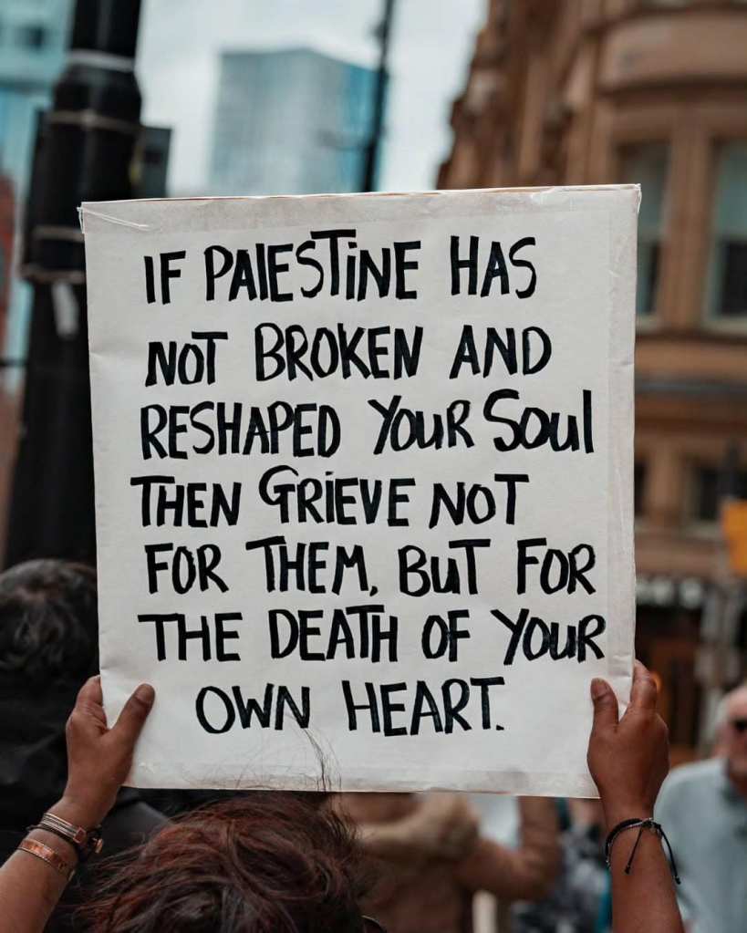 On aime croire qu’il est doit être possible de faire quelque chose à-propos d’un tel drame. Je vais donc continuer à y réfléchir et à ressentir la douleur humaine qui prend place en Palestine, mais pas que là d’ailleurs. Tout en continuant de tenter du mieux possible de contribuer à mon humble et petite échelle par l’entraide et la création de beauté à petite échelle.