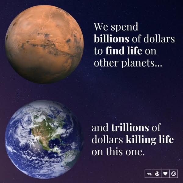 On dépense des milliards pour trouver de la vie sur d’autres planètes alors qu’on en dépense encore plus en détruisant le vie sur celle-ci.