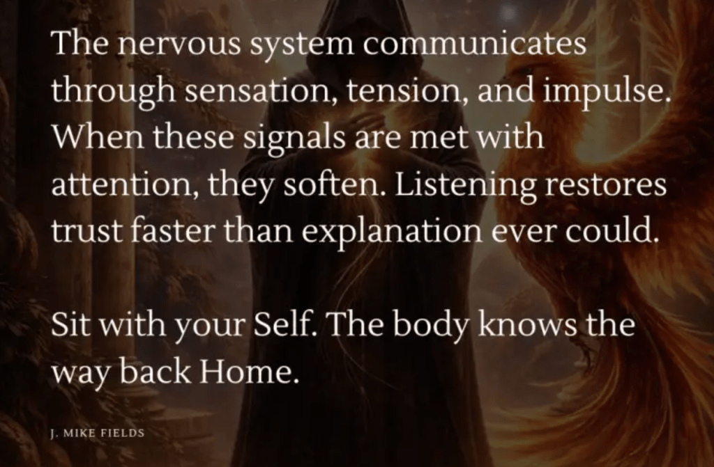 Et laissons le corps – via nos oreilles et le coeur – écouter ce chant qui inspire le retour à la maison, la vraie, la seule qui nous accueillera toujours, celle en soi, là où la porte ouvre sur la grande maison du monde. Parait que c’est par le coeur qu’on peut tout comprendre, même l’incompréhensible. Pour revenir au système nerveux qui, toujours, ne cherche qu’à ralentir et à revenir à la maison.