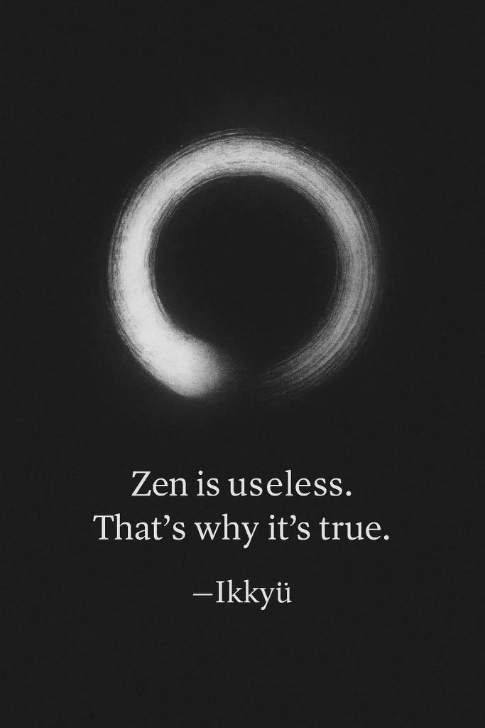 Ikkyü dit que le Zen ne sert à rien, et que c’est pour ça qu’il est vrai. Assez Zen à votre goût ça ? Pensez-y, à l’infini.