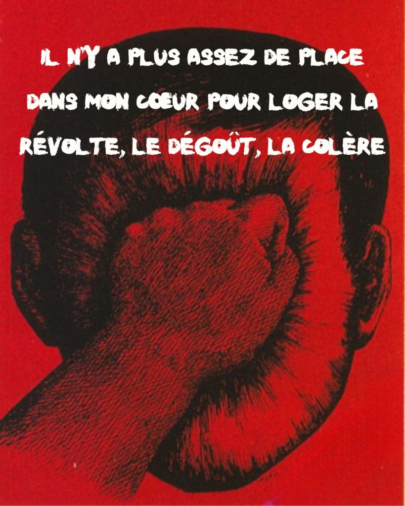 On peut soit haïr, ou utiliser cette puissance pour changer le monde autour de soi, en transformant cette rage, ce dégoût, cette colère et cette révolte. Au moins ne pas nier ces sensations, les reconnaître puis les transformer. Sinon ça se retourne contre soi et ça finit par nous manger. Comme un crocodile. Peut-être qu’on peut aussi manger le crocodile avant qu’il ne nous mange ?