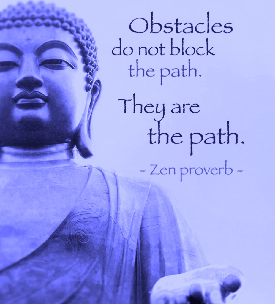 Dès qu’on rencontre ce qui peut ressembler à un obstacle, en soi ou en dehors de soi, on cherche à l’éviter, à le contourner. Pourtant, comme le dit ce proverbe Zen, les obstacles n’entravent pas le chemin, ils sont le chemin.
