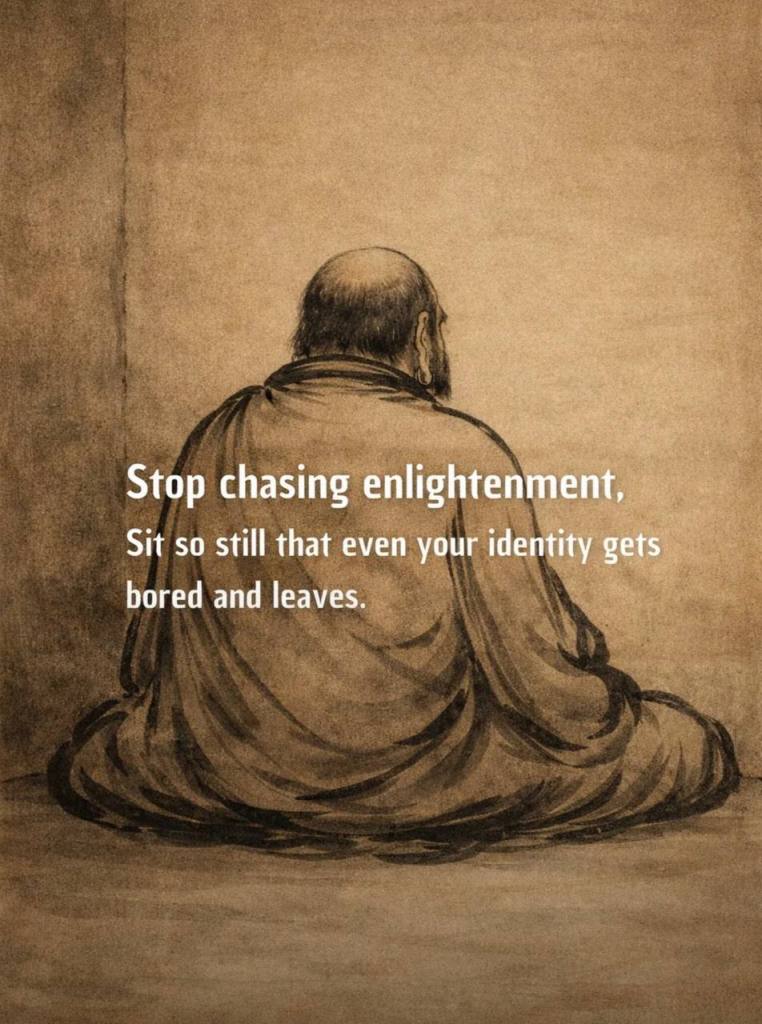 Nous sommes nombreux à vouloir devenir illuminé.e.s, éveillé.e.s, ou du moins à vouloir croître personnellement. Beaucoup moins nombreux par contre à simplement s’assoir avec soi-même dans l’ordinarité de la vie pour se rendre au point où même notre identité s’ennuie et sacre le camp.