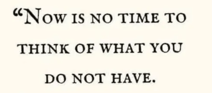 Maintenant n’est pas le moment – ou le temps – de penser à tout ce que vous n’avez pas. S’il fallait penser à tout ce que l’on a pas, on en aurait pour longtemps. Éternité quand tu nous tiens.