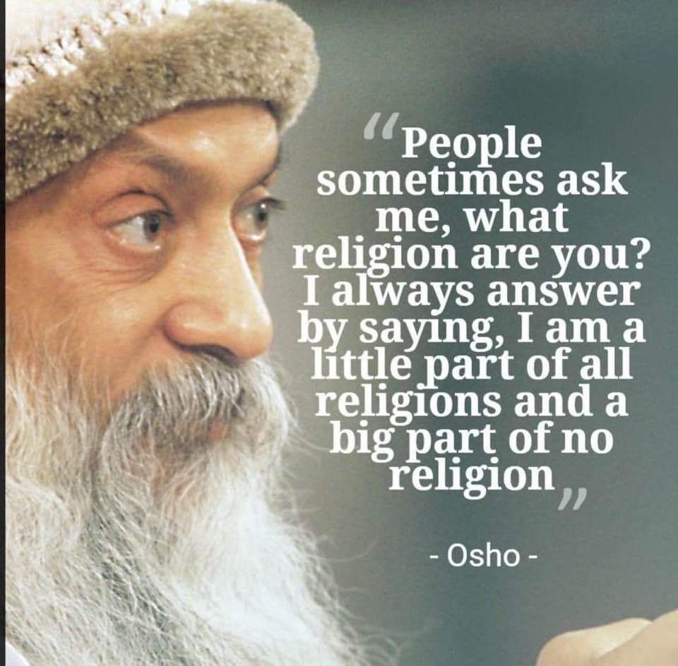 Les gens me demandent parfois de quelle religion je suis. Je réponds toujours en disant un peu de toutes les religions et beaucoup d’aucune. – Osho