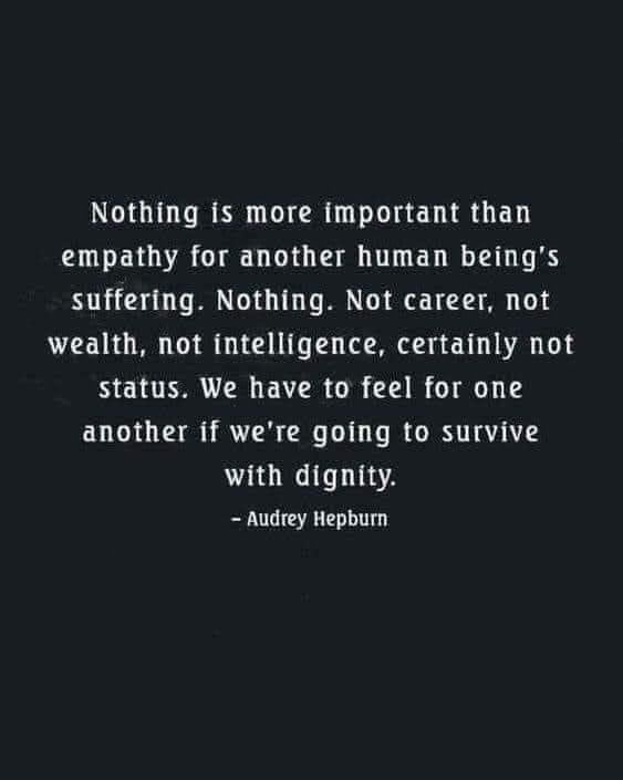 En ce sens, les mots de Mme Hepburn sont plus que significatifs, elle qui, si on se fie à ses mots, place l’empathie au-delà de tout. Et l’empathie consiste à partager la souffrance d’autrui, la sentir, la ressentir jusqu’en nous.