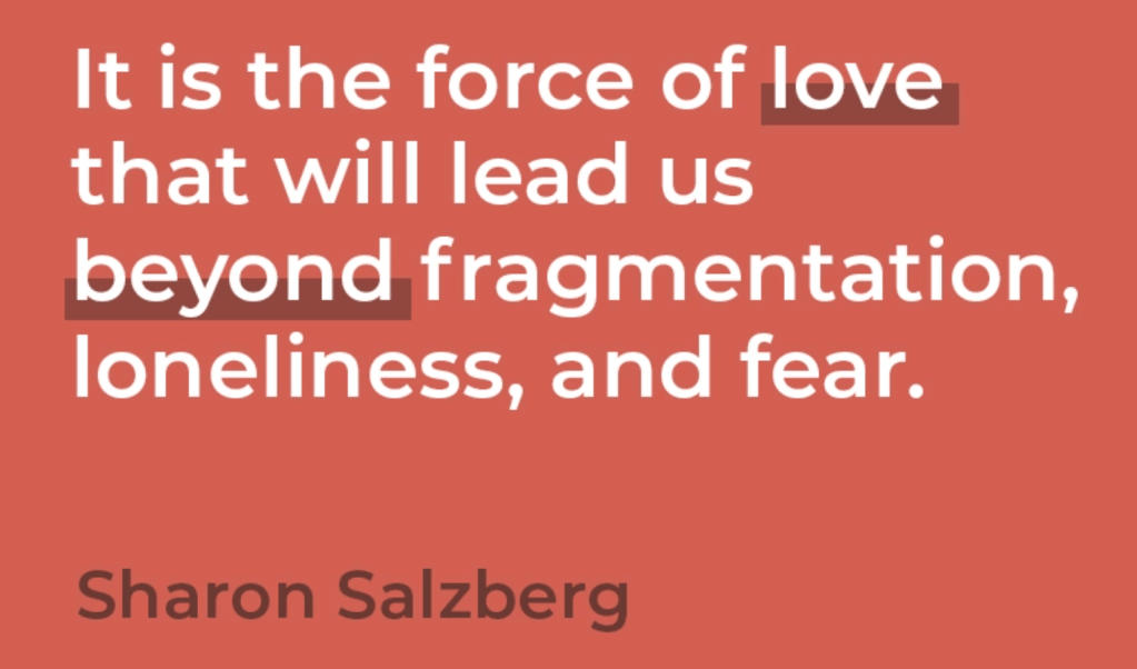 C’est la force de l’amour qui nous guidera au-delà de la fragmentation, la solitude et la peur. – Sharon Salzberg