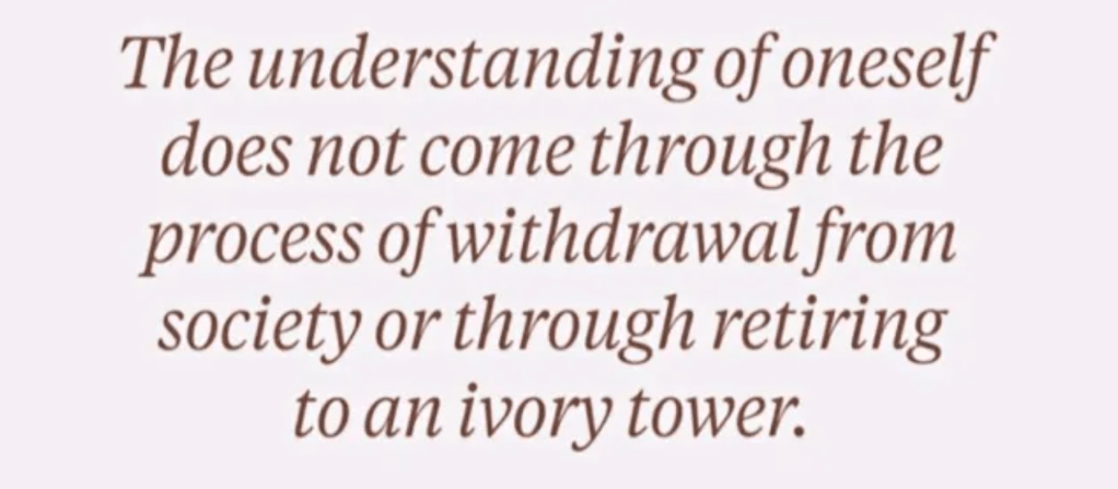 La compréhension de soi ne se fait pas en se retirant de la société ou en s’isolant dans une tour d’ivoire. – Krishnamurti