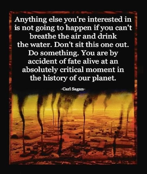 Et comme l’affirme ici Carl Sagan: on va peut-être réaliser qu’on ne pourra rien faire si on ne peut respirer l’air ni boire l’eau. On ne peut rester assis.e à ne rien faire, on doit prendre part à ce qui se passe. Nous sommes destiné.e.s à vivre en ces temps critiques de l’histoire de notre planète.