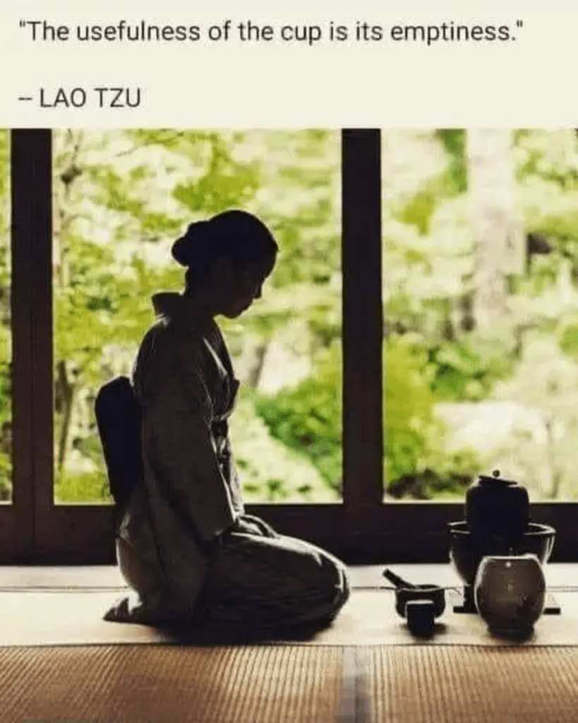Without attachment, neither to the water, nor to the leaves, nor to the cup and its handle, nor even to the void.