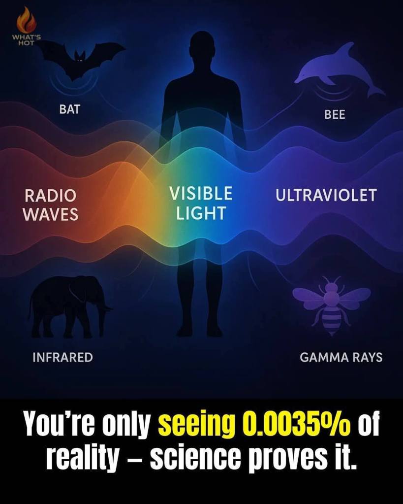 En fait, on ne voit à peu près rien de ce qu’on nomme si souvent la réalité, à peine 0,0035 % selon la science. Pas beaucoup ça. Infime partie.