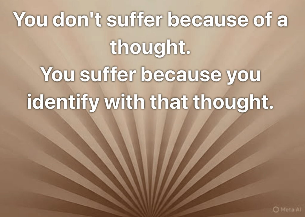 Mais on dit que l’on ne souffre pas à cause d’une pensée, on souffre parce qu’on s’identifie à cette pensée.