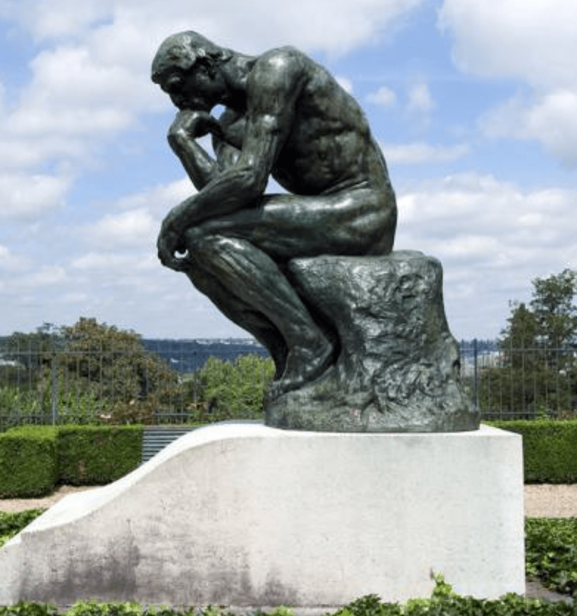 Ironique que cette sculpture, initialement créée en tant qu’élément à l’entrée de l’oeuvre La Porte de l’Enfer de Rodin, était censée n’être qu’une pièce parmi d’autres de cette création, mais elle est sortie du lot. La pensée s’est détachée pour devenir la Porte Royale de l’Enfer. L’enfer du décor.