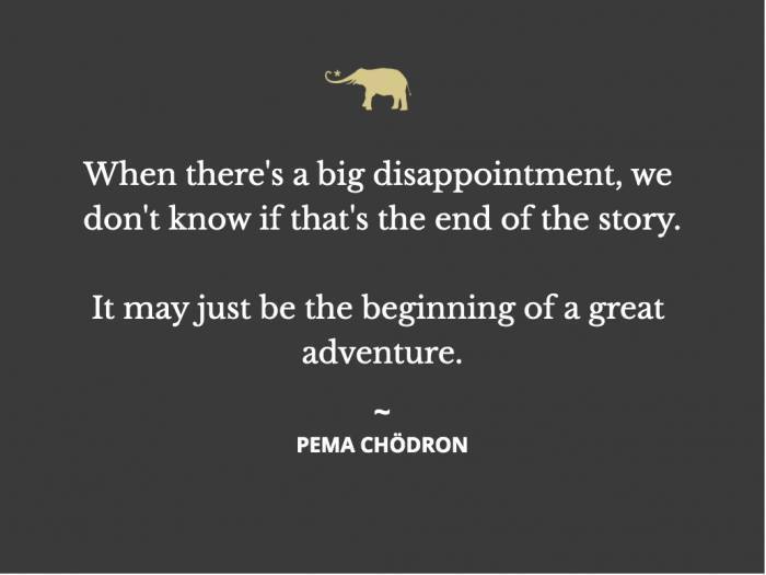 Au moment d’une grande déception, nous ne savons pas si c’est la fin de l’histoire. Ce n’est peut-être que le début d’une grande aventure. – Pema Chödron
