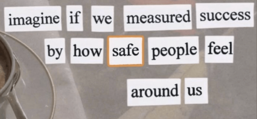 Imaginez si on mesurait le succès par le degré de sécurité que les gens ressentent autour de nous.