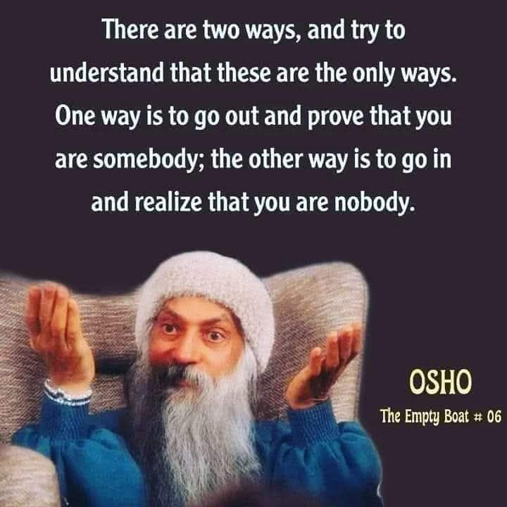 Il y a deux chemins, et essayer de bien comprendre quels sont ces deux chemins: le premier consiste à prouver au monde extérieur que vous êtes quelqu’un, et l’autre consiste à entrer en vous et réaliser que vous n’êtes personne.